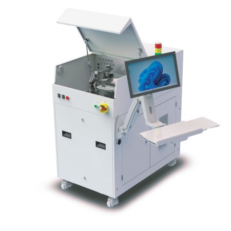為半自動桌面型(手動上片自動掃描),可根據需求配套機械臂和上下料片庫